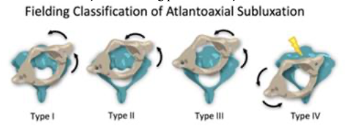 É uma subluxação rotatória das vértebras C1 e C2, frequentemente observada em crianças, mas que também pode ocorrer em adultos.