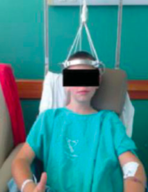 Tratamento com tração cervical seguido pelo uso de um colar cervical.