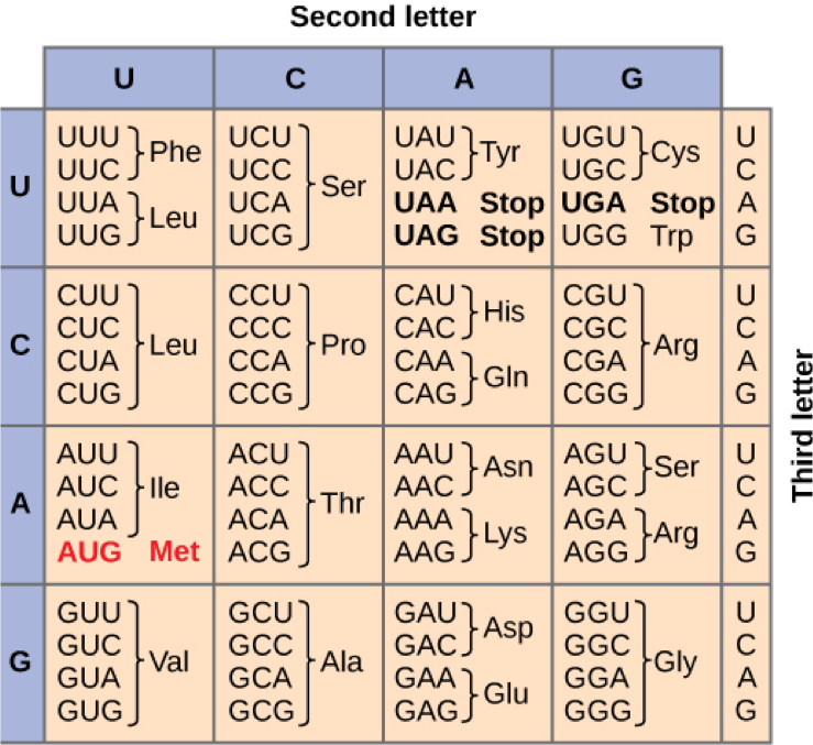 DNA transcribed to RNA mRNA triplet code ‘read’ by ribosome –> 3 letters of mRNA = a codon Encoded protein translated