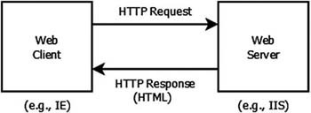 A Web Client will issue a request to a Web Server. The Web Server will locate the desired web page in storage and return this to the Web Client.