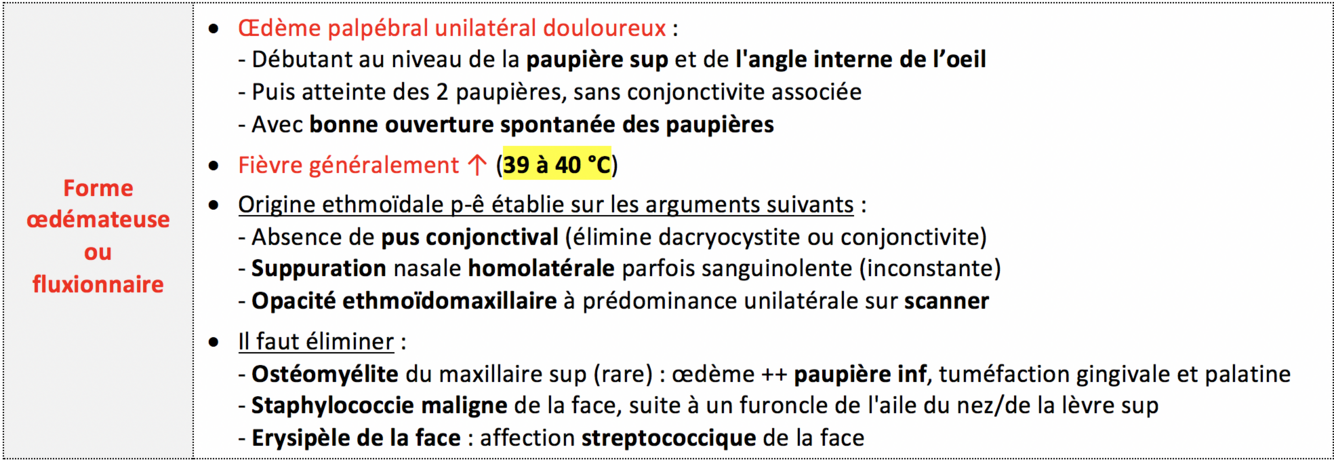 Ethmoïdite aiguë : forme œdémateuse/fluxionnaire