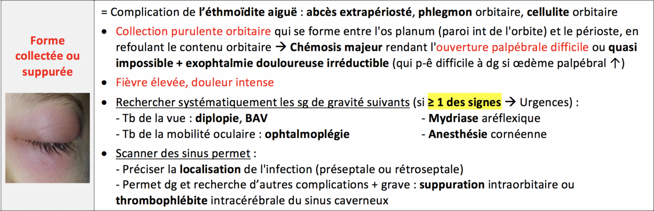 Ethmoïdite aiguë : forme collectée/suppurée