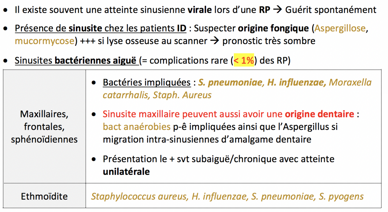 Etiologies sinusite (germes)