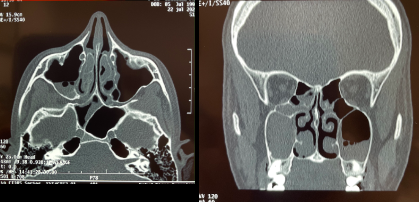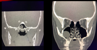 GS-> Dx radiológico: TC de nariz y senos paranasales (cortes axiales y coronales)