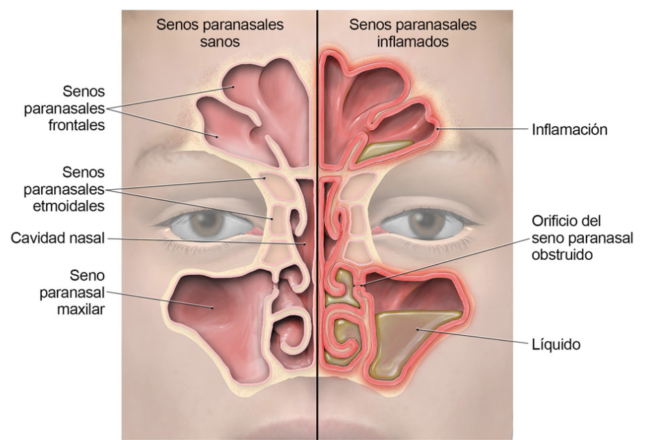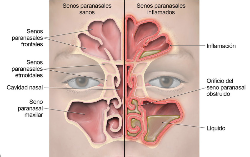 Inflamación de la mucosa de los senos paranasales con presciencia de moco, con la consecuente obliteración de las áreas de paso y drenaje dentro del laberinto anatómico sinusal.