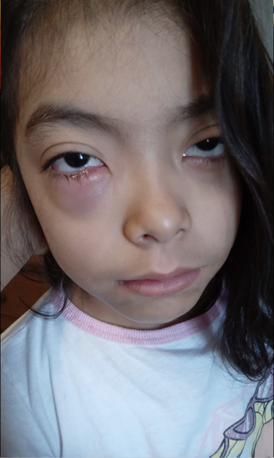 la foto es una celulitis pre-septal