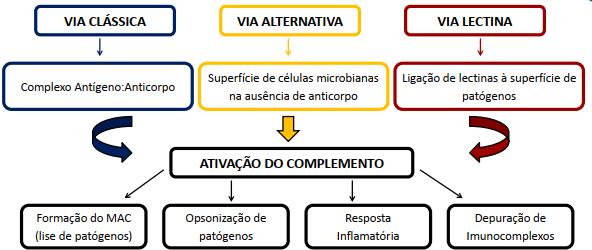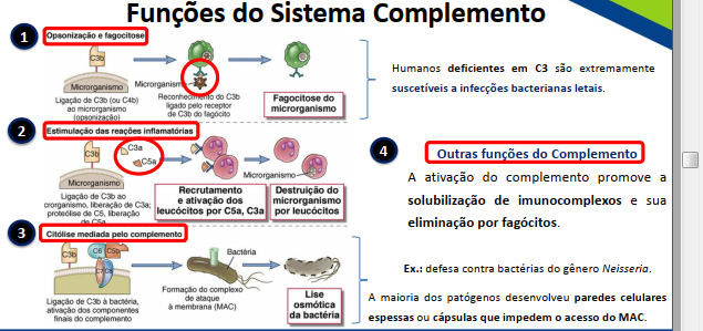 Divisões do sistema complemento e consequências da ativação do complemento :