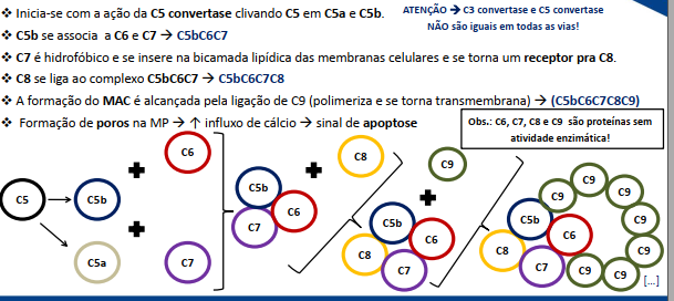 Formação dos poros na membrana do MO através da junção da : C5b+C6+C7+C8+C9