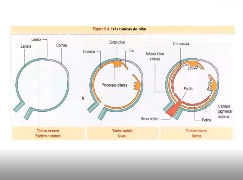 O olho pode ser ainda, dividido em túnicas, quais são elas?