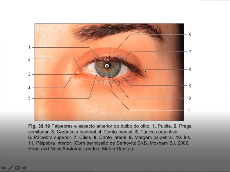 Identifique a pálpebra e a conjuntiva , qual a função da pálpebra e pelo o que ela é composta.