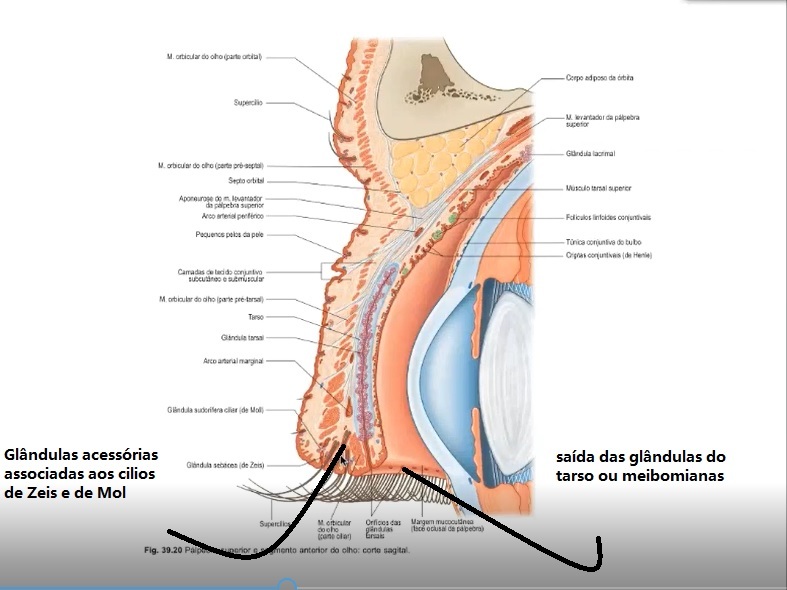 Nessas placa do tarso é que estão as glândulas tarsais ou Glândulas meibômianas