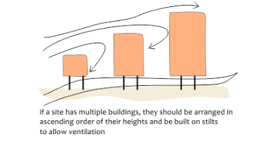 Should be staggered in asscnding order, maximize cross ventilation