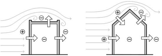Where is the negative pressure on the buildings