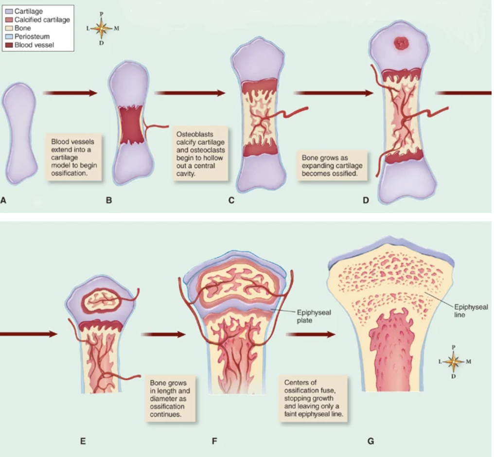 Ossification is a bone being formed in cartilage.