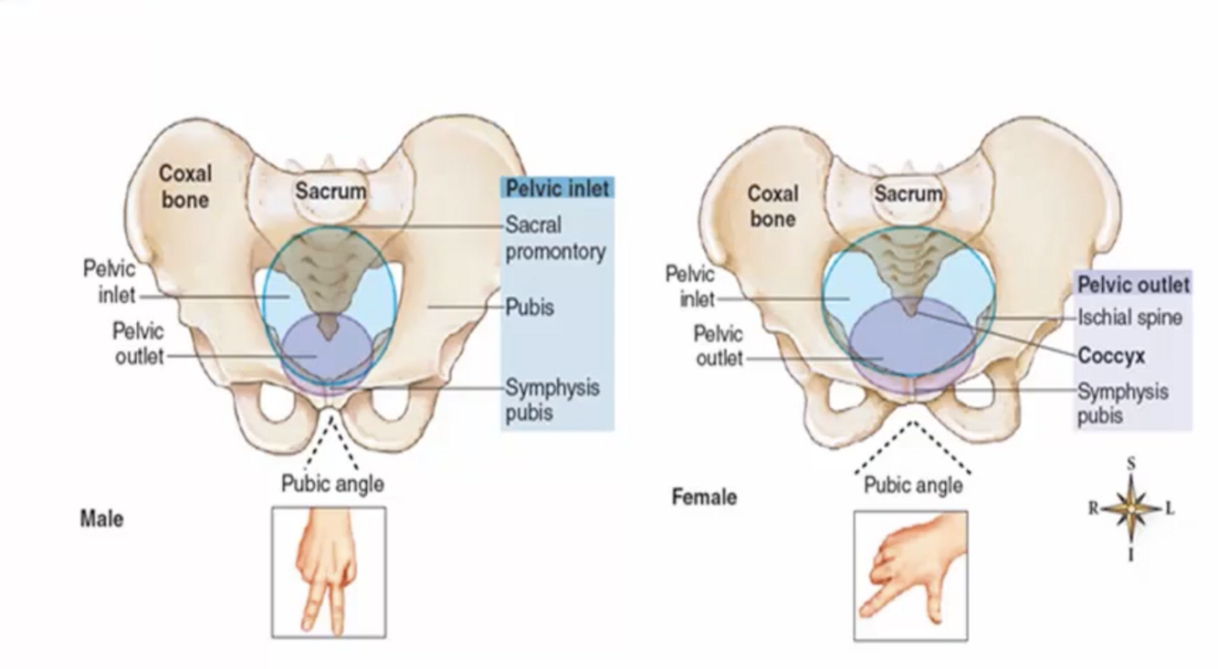 How does the female pelvis differ from the male pelvis?