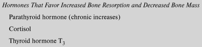 What are Hormones that favour Increased Bone Resoption and Decreased Bone Mass?