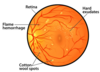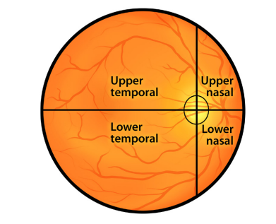 How far should the ophthalmoscope be held from the patient’s eye during examination?