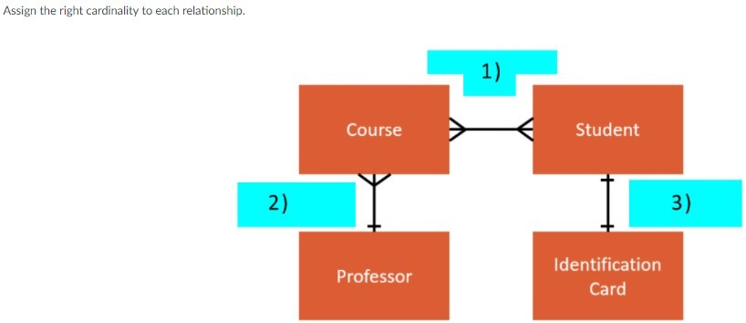 Assign the right cardinality of each relationship: See attached images…