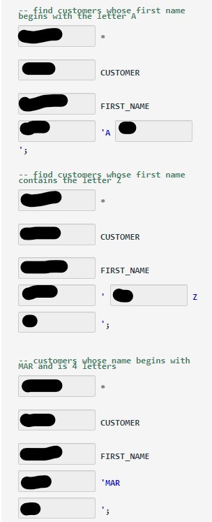 SELECT, FROM, WHERE, LIKE, %(Z)%