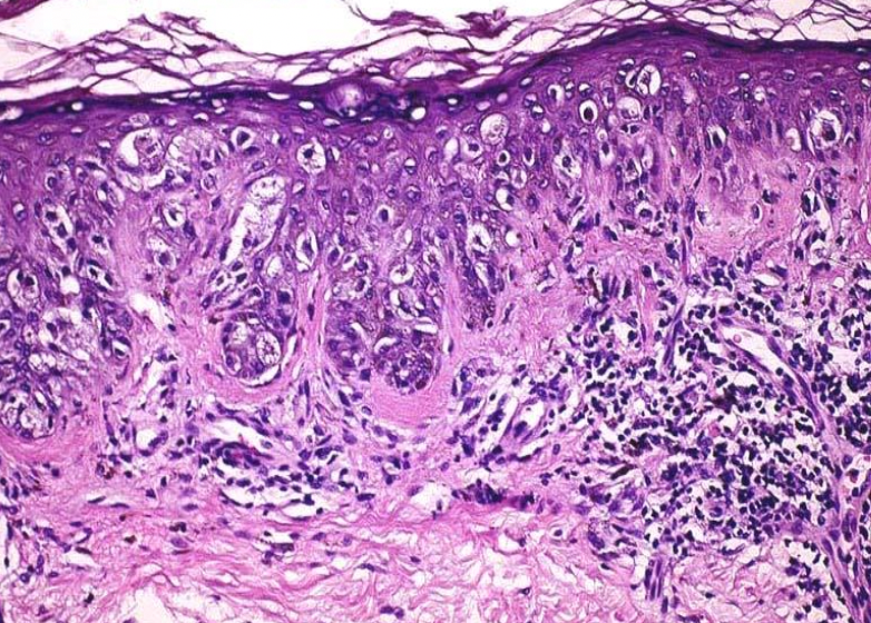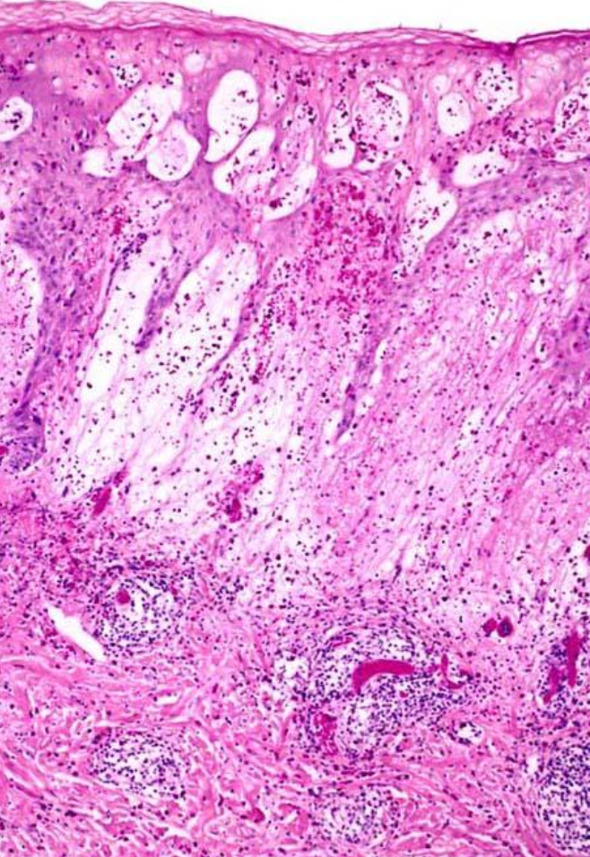Edema/fluid, splays apart keratinocytes → spongiotic dermatitis