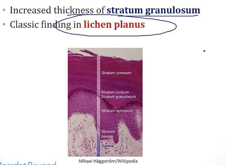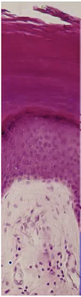 stratum granulosum - contain keratohyalin granules used to form keratin filaments, appear darker on pathology