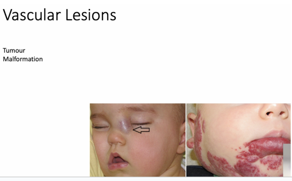 Benign vascular tumour. Absent at birth, appears after, grows rapidly in infancy, regresses over time.