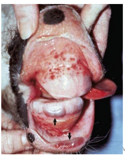Red or purple macules or patches (hemorrhage or infarct) in the skin or mucous membranes