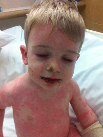 then red blotchy rash on face that becomes more generalised.