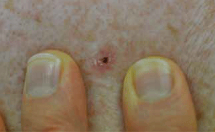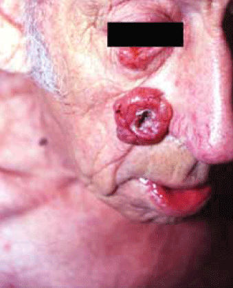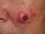 78 yo. Slow growing lesion, occassional bleeding.