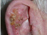 Rx: RACGP - ears, eyes, nose and lips are potential danger areas - more aggressive. Need excision or referral.