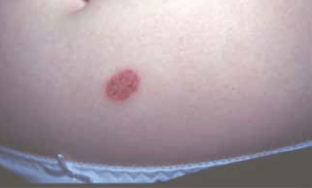 typically presents as well defined red patch on body or limbs