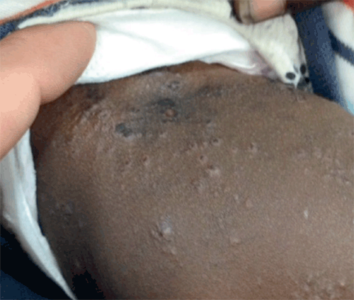 Scabies and secondary bacterial infection (impetigo)