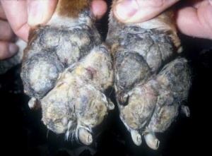 Footpad hyperkeratosis: from metabolic disease –> ↓ elasticity &