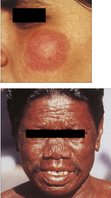 * Pathogen category: acid-fast bacillus, obligate aerobe, intracellular * Source: human reservoir (armadillos) * Virulence: acid-fast status with preference for lower temperatures * Clinical: leprosy (invades skin cells and nerves) * Immune response: granuloma formation effective * Treatment/Prevention: prolonged (24 month) multidrug therapy (clofazimine, dapsone, rifampin) * Tuberculoid leprosy- vigorous cell mediated response to the bacterium with Th1 cells; local numb patch * Lepromatous leprosy- weak cell mediated experiences with vigorous cell mediated immune response with more Th2 cells helping to down-regulate the CMI; infecting neurons so the immune system doesn’t want to go after it; more “classic” appearance of leprosy * Slow growth and long incubation period