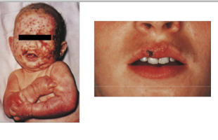 Parvoviruses (unenvelopedvirus)are unusual in that they are ss DNA. The “slapped cheek” rash of fifth disease(erythemainfectiosum) from parvovirus B19 and subsequent confluent rash (and occasional joint pain) stems from the immune response to the infection and generation of antigen-antibody immune complexes, and infection of erythrocyte precursor cells, e.g., an aplastic anemia crisis seen in sickle cell anemia patients with viral cytopathic destruction of those cells. No vaccine is available. Looks to settle down in bone marrow and attacks erythroblasts thorughhemategnousspread, which can produce humoral antibody resposnenot letting it get to the bone marrow, rash and joint bone depending upon where complexes settle. Common in children, can develop slight anemia. However, someone with sickle cell, or chemo reactivated and can really impact these particular populations.