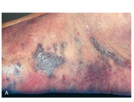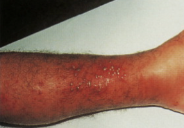 Dermatophytesare fungi which are characterized by itching, scaling skin that can become inflamed. The three main genera of Epidermophyton, Microsporum, andTrichophytonlive off the keratinin the superficial epidermis, by producing a keratinaseto break down the food. Generally speaking, terbinafine or one of the azole drugs, both of which interfere with ergosterol synthesis, will be useful for treatment (Sanford Guide 2019).One possible concern is an “id reaction” (a generalized pruritic rash) from circulating fungal antigens that can occur with dermatophyte infections.