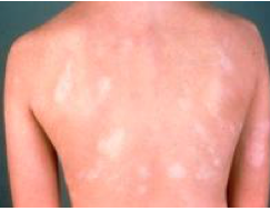 Ina slightly different pattern, pityriasis(tinea)versicoloris caused by the resident dermatophyteMalesseziafurfurthat lead to hypo-or hyperpigmentedlesions with oily moist skin, e.g., younger adults in the tropics. Although the infection is in the stratum corneum, the fungal metabolites may generate either tyrosinase inhibitors (hypopigmentation, typically more noticeable) or may stimulate more melanosomes(hyperpigmentation).