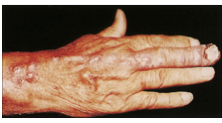 Mycobacterium lepraeis an acid-fast bacterium (so slow-growing, aerobic) agent that causes leprosy. M.lepraeis not very infectious as it invades skin and nerves (e.g., thickened ulnarn. that can lead to ulnar palsy) as these mycobacteria proliferate in Schwann cells as well as macrophages. Prefers cooler environments of neurons and skin(skin deep and local nerves) happy and granulomatouslyrestraining it. Lepromatouspicture not good cell-mediated response due to its location in neurons utilizing IL10 and TH11 more skin infections from numb waxing skin human to human contamination with a slow cutaneous nasal spread taking months to years for contagious along with 2 years of clearance. Characterized by numbenessof the location trying to catch it before It turns bad.