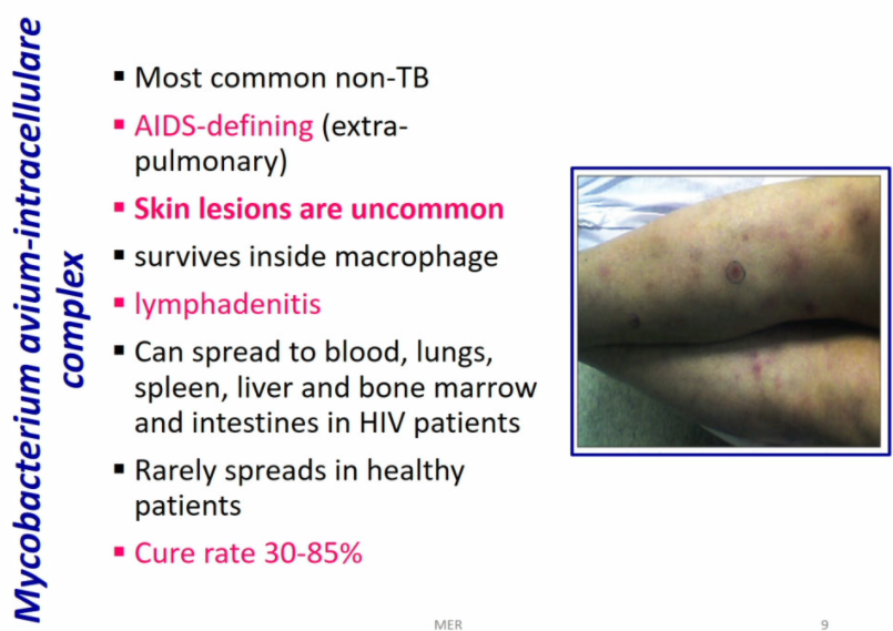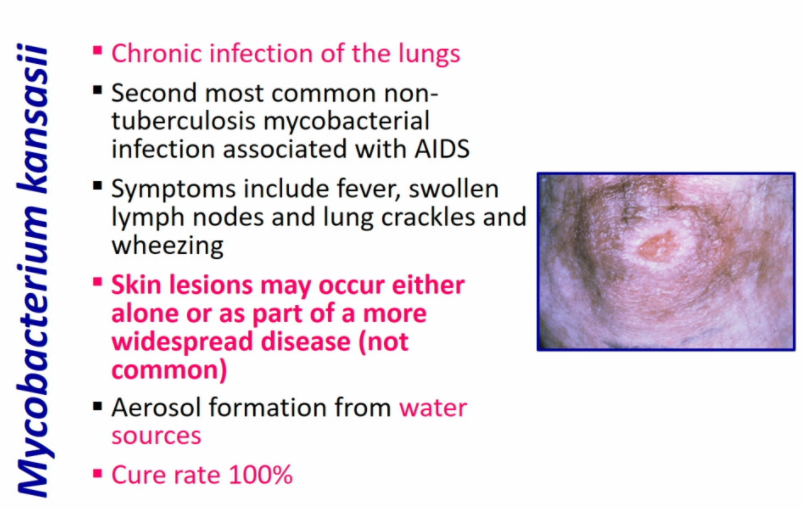 Mycobacterium kansasii causes chronic infection of the lungs and causes fever, swollen lymph nodes and lung crackles and wheezing