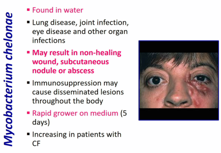 Mycobacterium chelonae causes non-healing wounds, subcutaneous nodules or abscess and is a rapid grower on medium