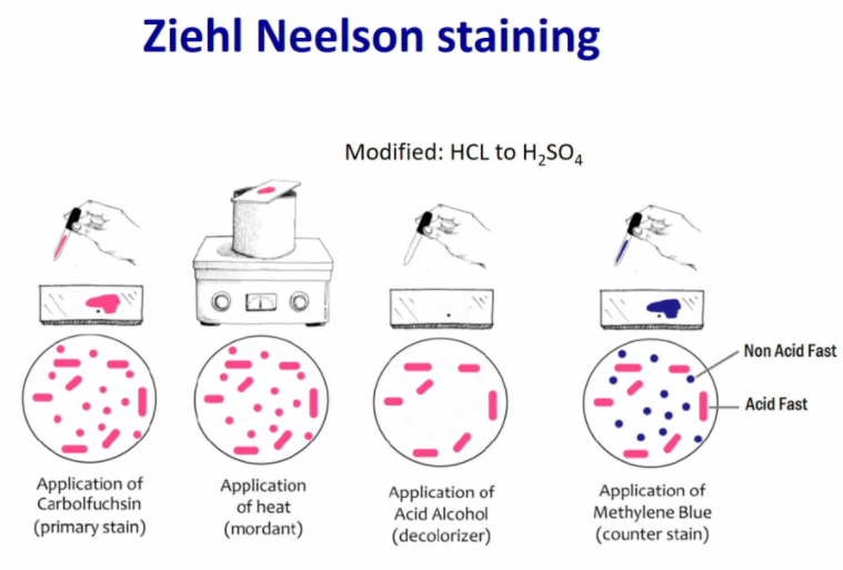 list the stages of Ziehl Neelson staining