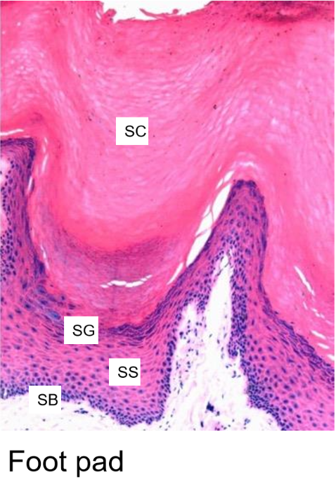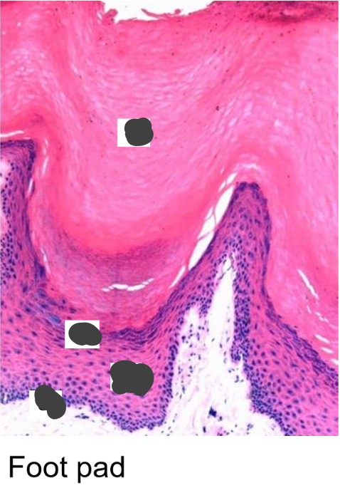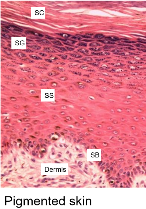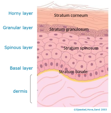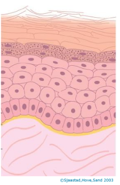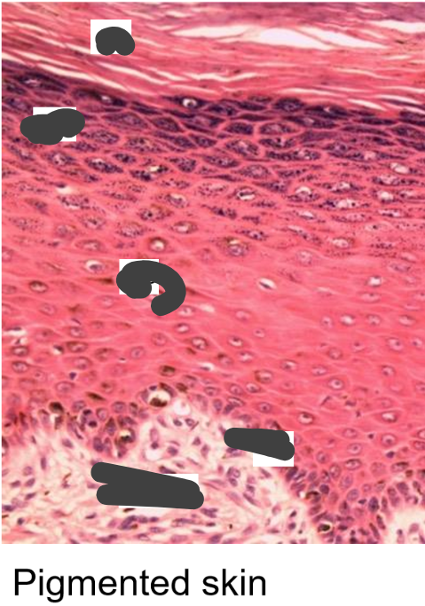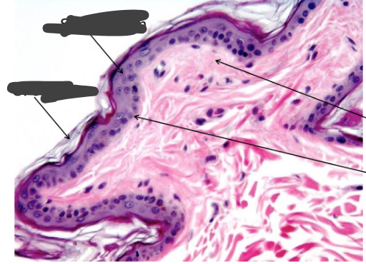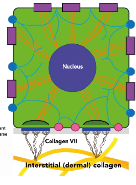 Hemidesmosomes (anchor the epidermis to the dermis)