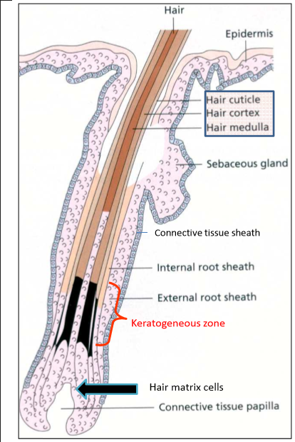 Simple hair follicle - one follicle exiting out of one opening (ruminants and horses)