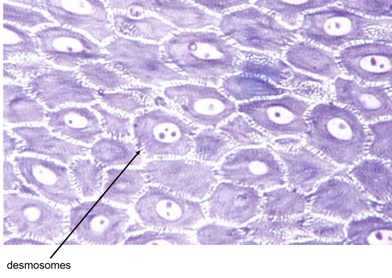 Has lots of desmosomes (connections) with intermediate filaments connecting to the desmosomes