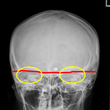 where should the petrous ridges be in a Caldwell skull