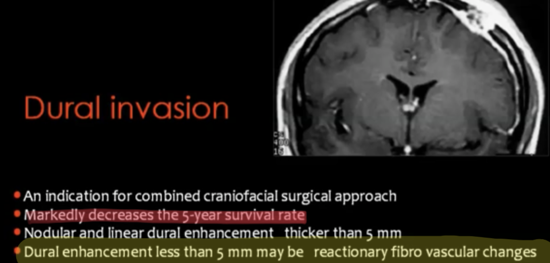 When do u consider the enhancement of dura to be dural invasion? What`s the importance?