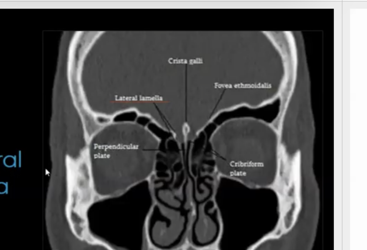Nme all of the strutures surrounding the Crib. Plate in coronal view?