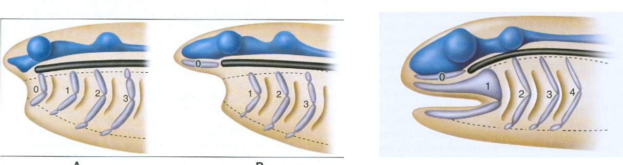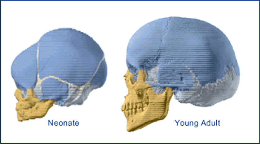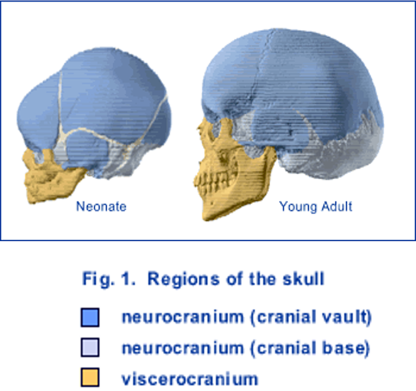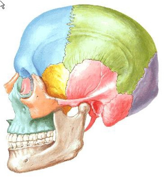 Basilar and lateral occipital, Sphenoid, Ethmoid, Petrous and mastoid parts of the temporal bones)