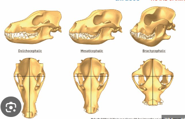 Mesaticephalic – german shepherd, setters (cranium length same as nose length)