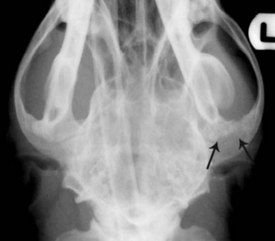 left zygomatic arch neoplasia in left image